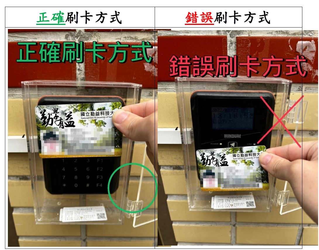 (二)教職員及學生憑職員證或學生證刷卡進入,門禁刷卡機位置分